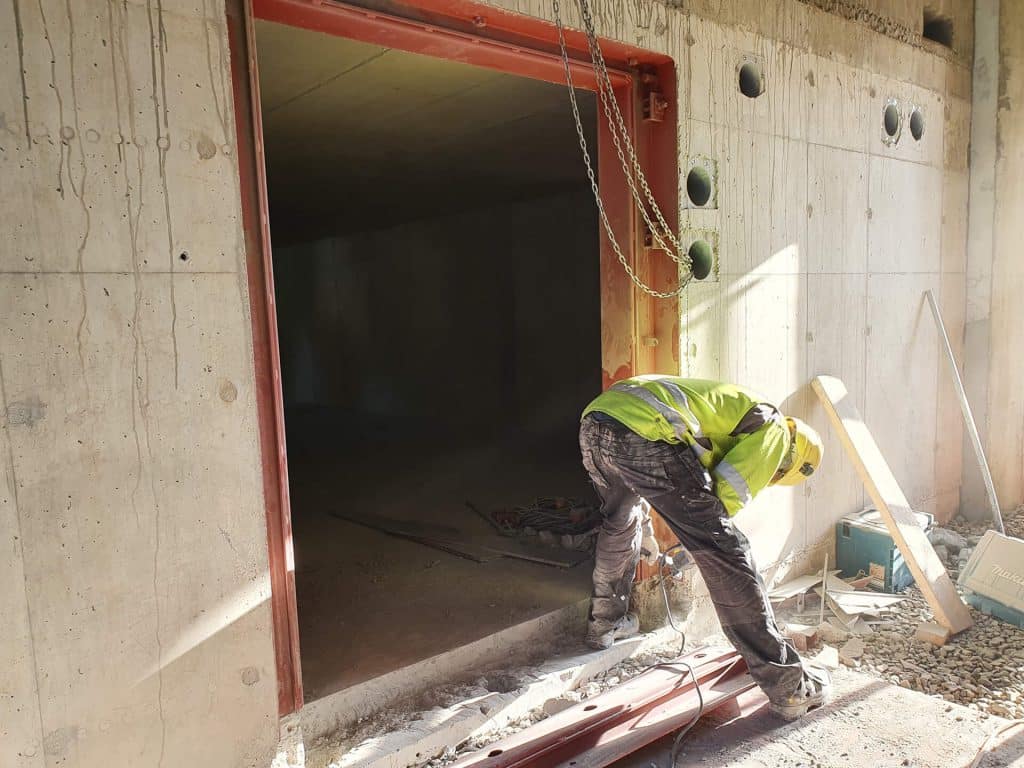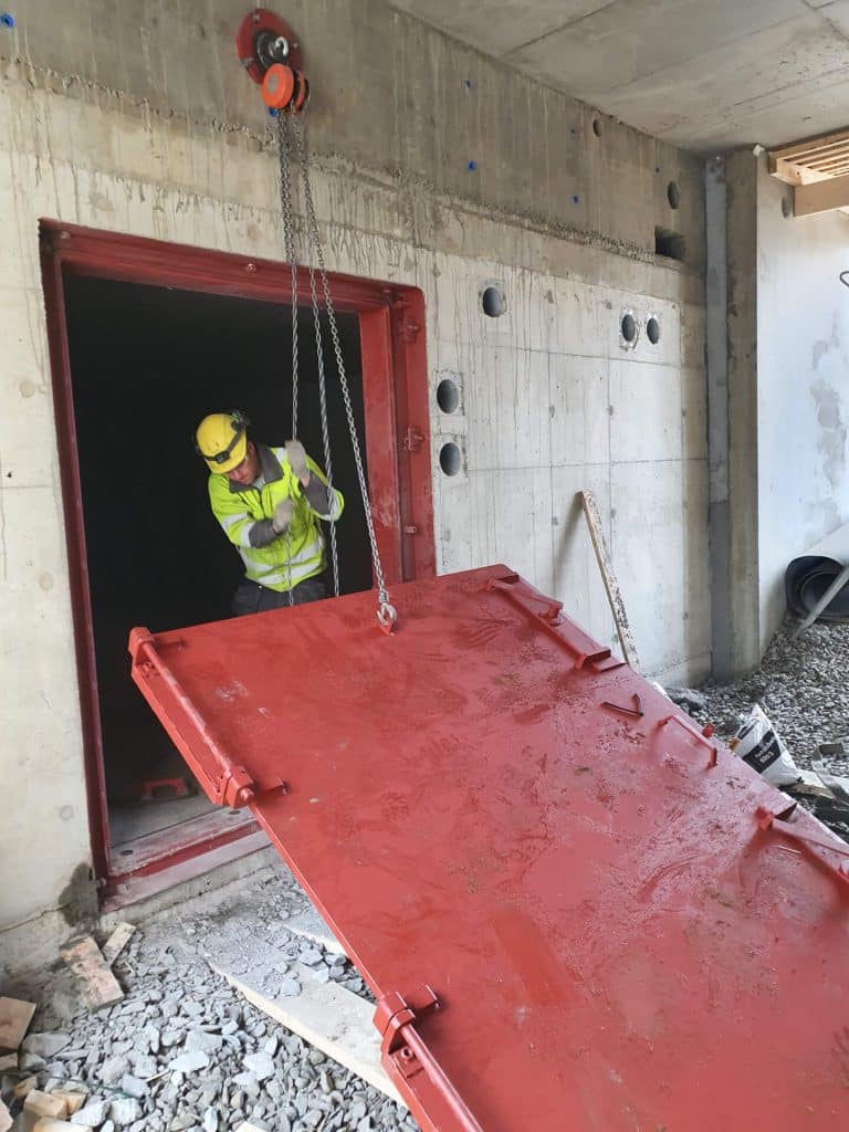 Yrityksemme kautta myös väestönsuojien erikoistyöt Väestönsuojan ovien asennukset Yrityksemme kautta myös väestönsuojien erikoistyöt esimerkiksi teräsovien asennukset ym. jotka vaativat yleensä myös tulitöitä. Ovien asennus